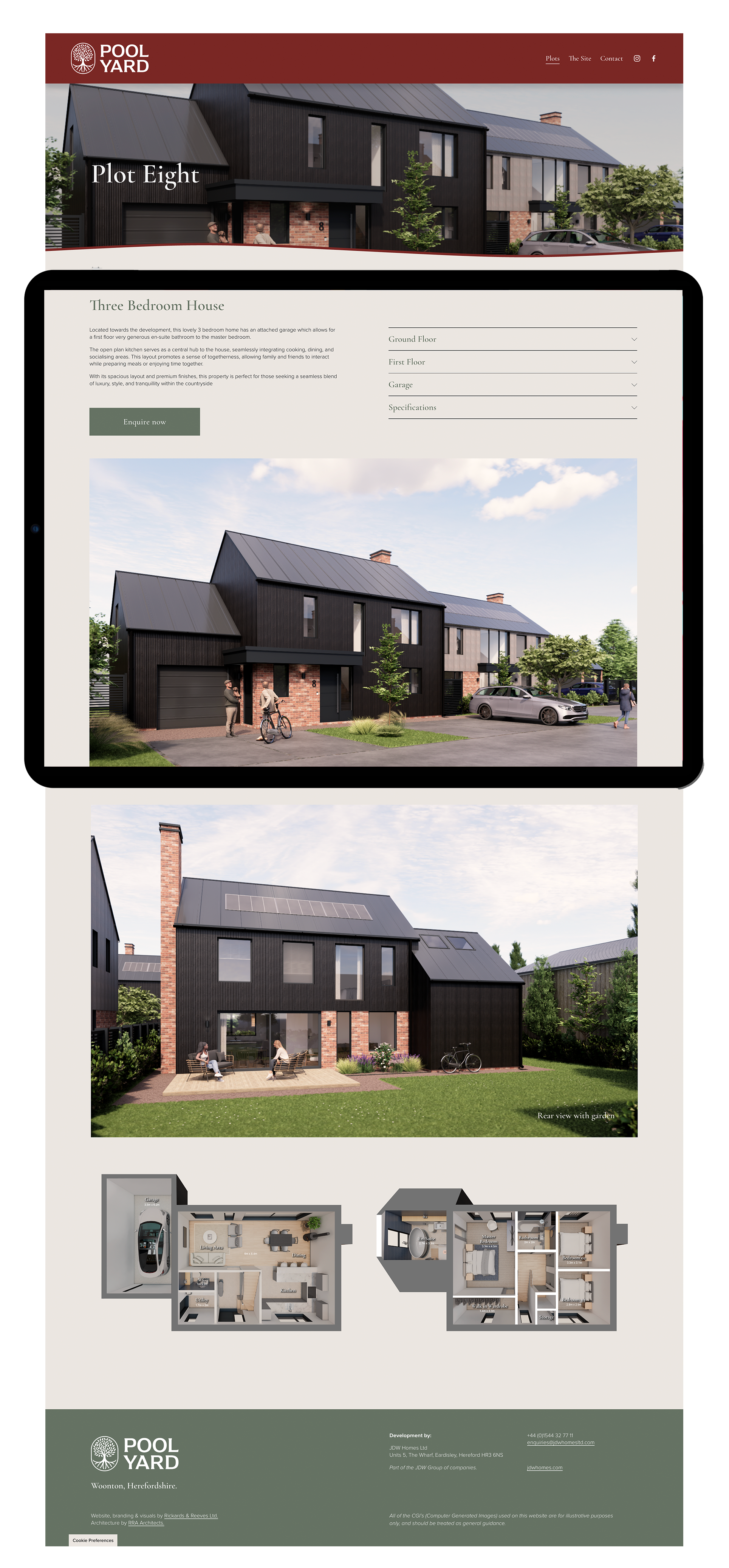 Website creation was the final natural output for the brand formation in order to showcase the 8 plots available for sale. Squarespace was used to delevop the site and a strong brand identity was visualised through colour and typeface application throughout each page. A vast amount of information was able to be communicated in a sophisticated manner, whilst the visuals of each house were centre stage and floorplans available to explore.