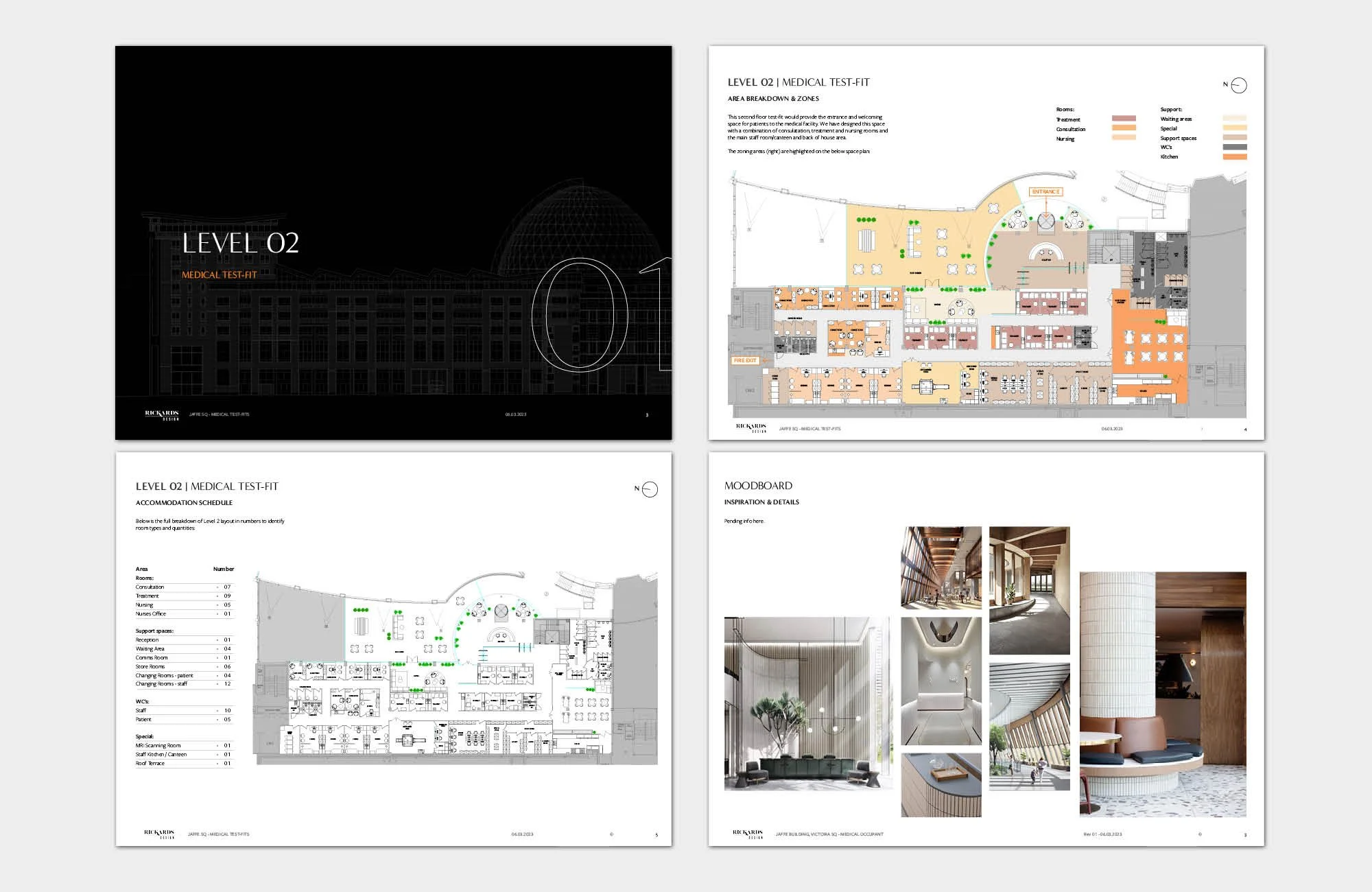 In order to secure a future tenant to a newly developed CAT A space, Rickards Design created conceptual visuals alongside floor plans for a potential private medical practice in Belfast. Working alongside Lambert Smith Hampton (building management) a number of layout configurations were produced, using the requirements and brief provided by the medical practice interested in the space.